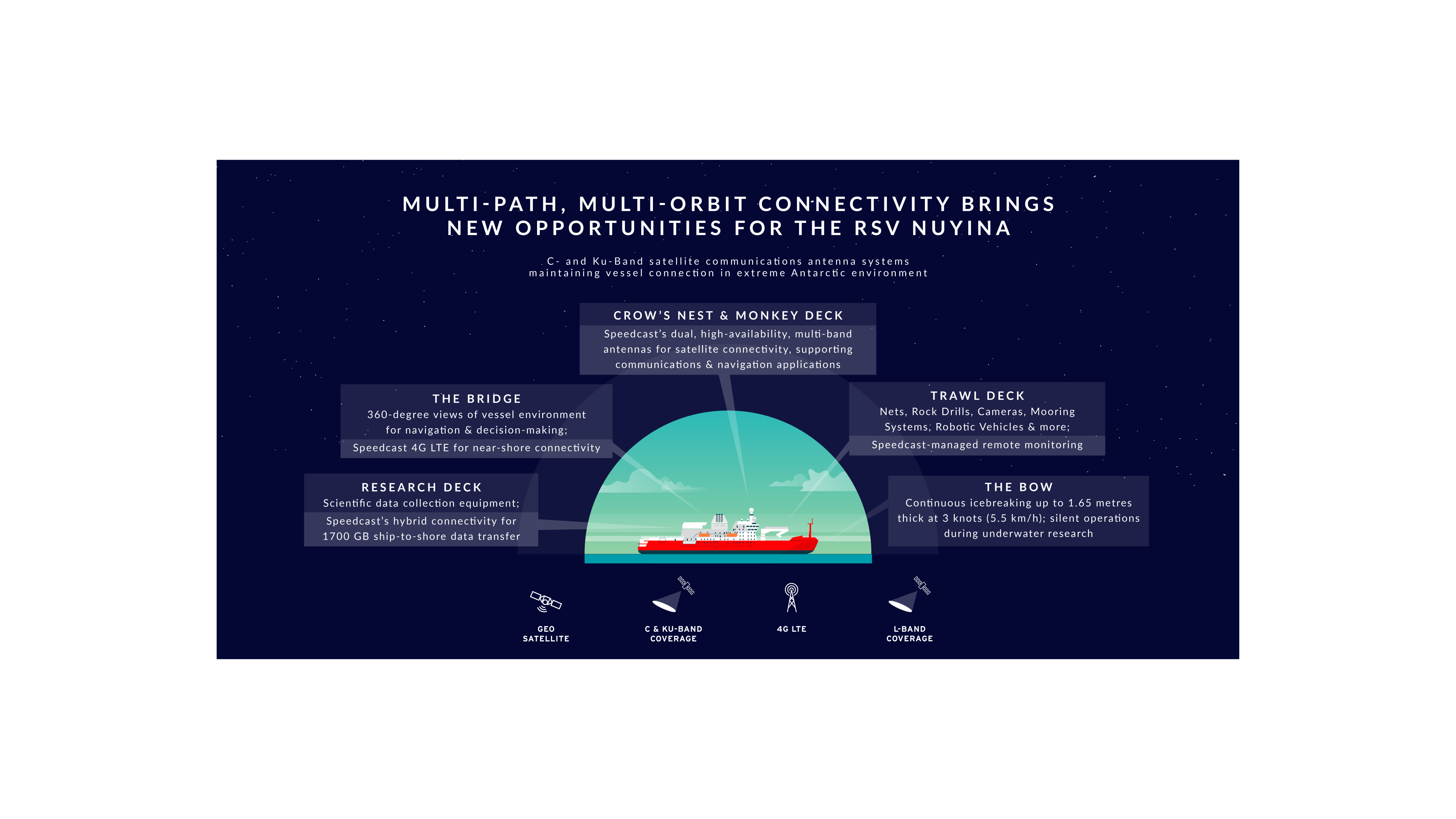 Speedcast delivers unparalleled levels of technology innovation and network automation to keep the Nuyina connected, ensuring 100% uptime at the end of the Earth.